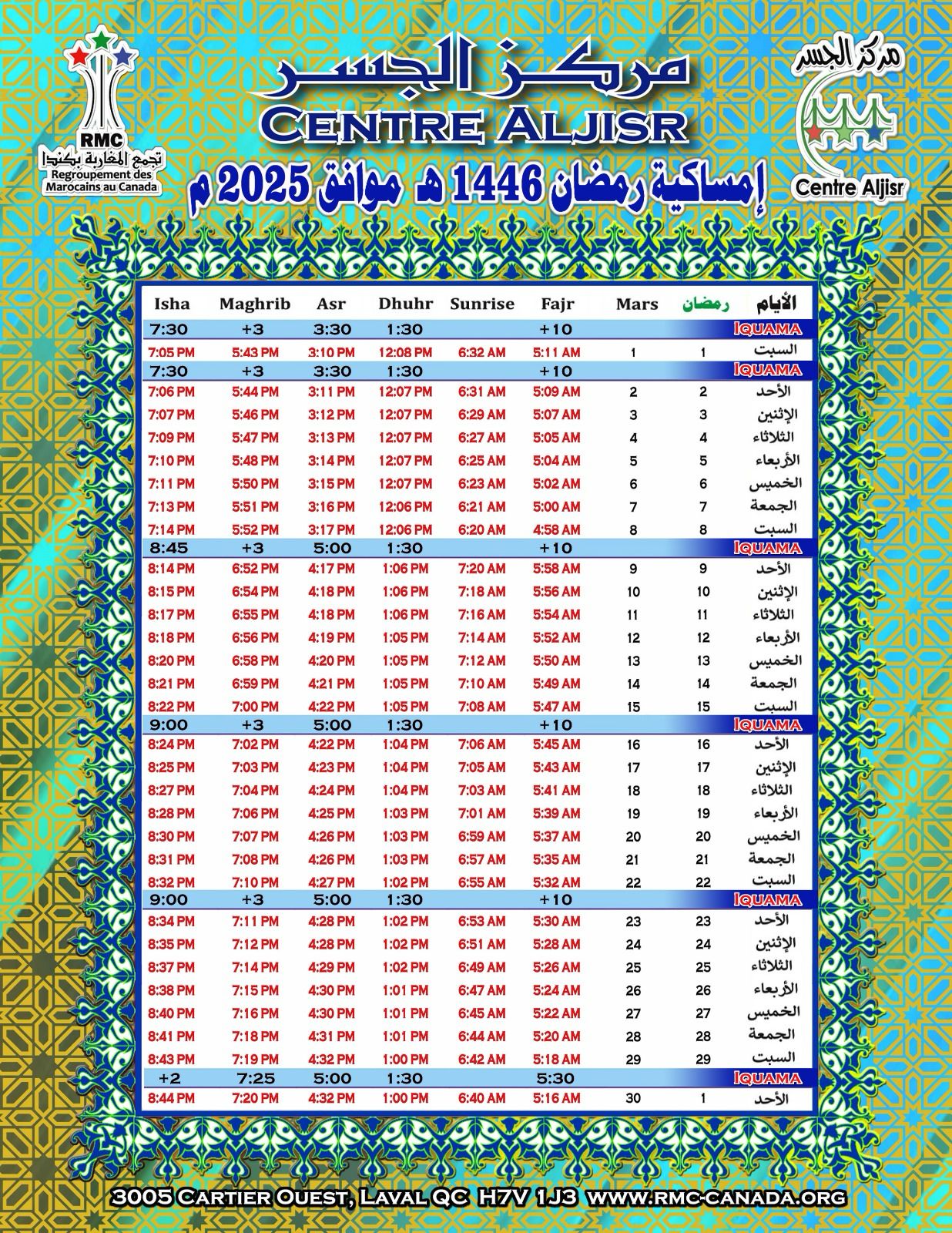 - Le premier jour de Ramadan pour l’année 1446 sera le samedi 1 mars 2025;